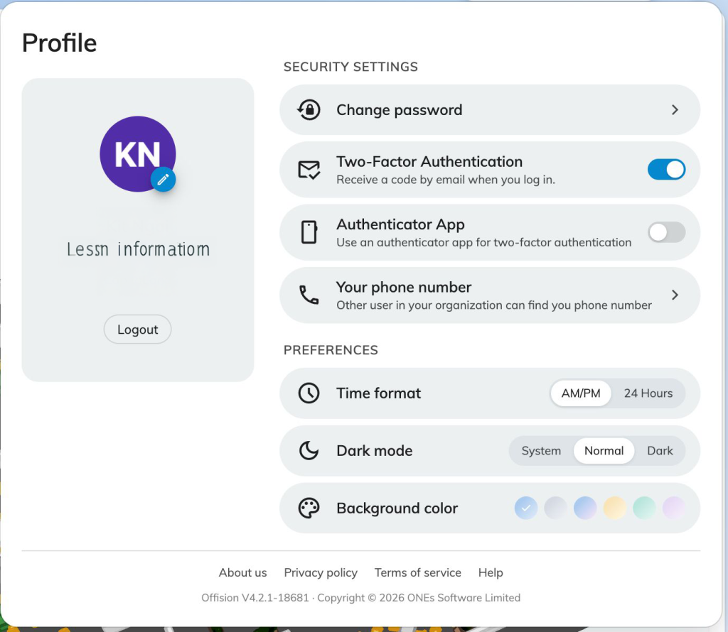 Once you enable Two‑Factor Authentication, Offision will ask for an additional verification code every time you log in.