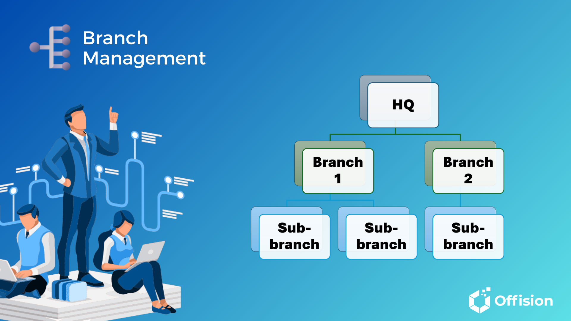 Branch Management is designed to accommodate a variety of organizational structures, from simple hierarchies to complex matrix organizations. This flexibility ensures that Offision can adapt to your specific needs, no matter how your company is structured.