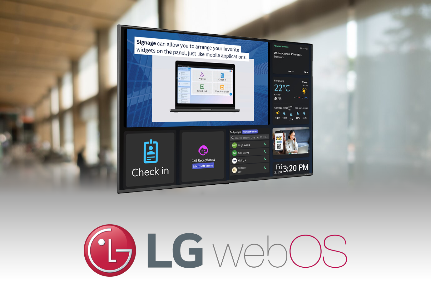 接待处或大堂区域的数字屏幕,用于显示针对预期访客的个性化问候语,以及会议详情或路线指引。